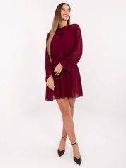 Burgundowa rozkloszowana sukienka z żabotem RUE PARIS