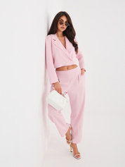Pastelowy różowy elegancki komplet z szerokimi spodniami RUE PARIS