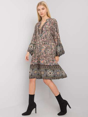 Khaki sukienka we wzory z falbaną Claremont OCH BELLA