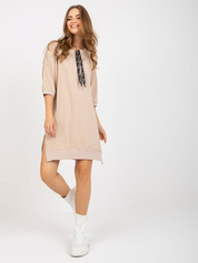 Ciemnobeżowa bluzka bawełniana z aplikacją Bindy
