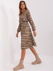 Beżowo-zielona długa sukienka z printami i paskiem