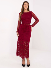 Bordowy elegancki komplet z ozdobnym guzikiem