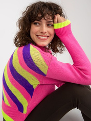 Hurtownia Różowy sweter klasyczny z kolorowym nadrukiem