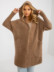 Hurtownia Camelowy damski płaszcz alpaka z kieszeniami