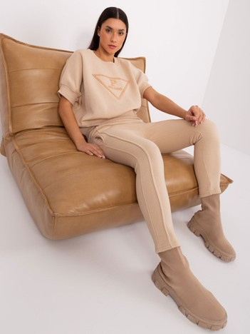 Hurtownia online Beżowy bawełniany komplet dresowy z bluzą