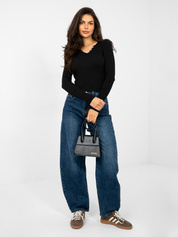 Czarna damska bluzka basic z guzikami przy dekolcie