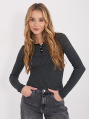 Czarna damska bluzka basic z guzikami przy dekolcie