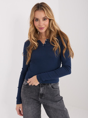 Granatowa bluzka z ozdobnym węzłem na dekolcie