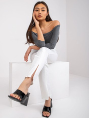 Hurt Ecru prążkowane legginsy basic z bawełny