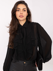 Czarna rozpinana koszula z żabotem RUE PARIS