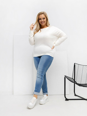 Hurt Jasnobeżowy damski sweter plus size z dekoltem V
