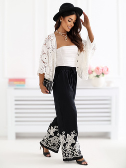 Ecru dwuczęściowy komplet koronkowymi lampasami