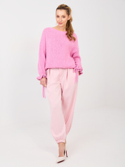 Jasnoróżowe damskie spodnie ze zwężaną nogawką