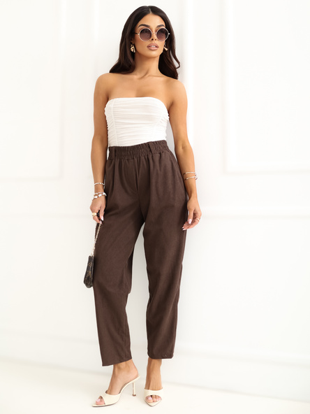 Ciemnobrązowe letnie spodnie z wysokim stanem
