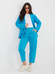 Pastelowe niebieskie garniturowe spodnie z kieszeniami RUE PARIS