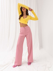 Hurt Jasnoróżowe spodnie dzianinowe z szeroką nogawką