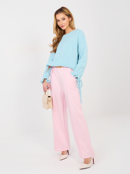 Pastelowe różowe spodnie palazzo z paskiem RUE PARIS