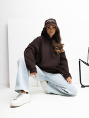 Czekoladowa dresowa bluza basic z kapturem RUE PARIS
