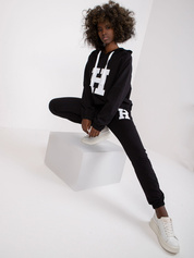 HurtCzarny luźny komplet dresowy z bluzą z aplikacją