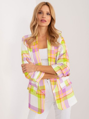 Hurt Limonkowo-ecru damska marynarka z printem