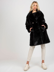 Hurt Czarny damski płaszcz futrzany z kieszeniami OCH BELLA