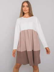 Ecru-ciemnobeżowa bawełniana sukienka z długim rękawem Emine RUE PARIS