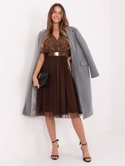 Brązowa midi sukienka z tiulowym dołem
