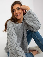 Hurt Szary sweter z warkoczami z dodatkiem wełny RUE PARIS