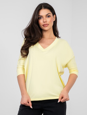 Pastelowa żółta bluzka basic z dekoltem V RUE PARIS