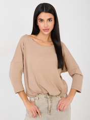 Ciemnobeżowa bluzka basic z rękawem 3/4