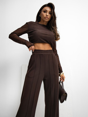 Czekoladowe spodnie basic bez zapięcia RUE PARIS