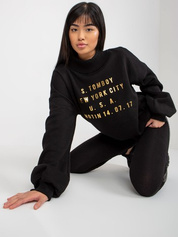 Hurtownia Czarna dresowa bluza z napisami i golfem