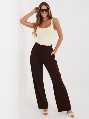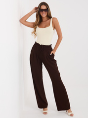 Czekoladowe spodnie z rozszerzanymi nogawkami RUE PARIS