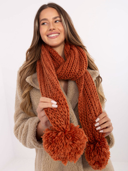 Ciemnopomarańczowy ciepły szal z pomponami