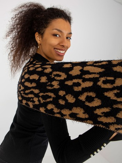 Hurtownia Camelowo-czarny szal damski w zwierzęcy wzór