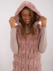 Hurt Brudnoróżowa długa kamizelka futrzana z kapturem
