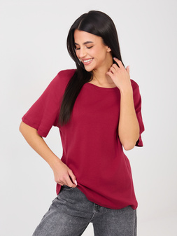 Bordowy t-shirt basic z bawełny RUE PARIS