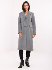 Szary długi płaszcz z kieszeniami