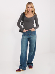 Grafitowa bluzka basic z okrągłym dekoltem