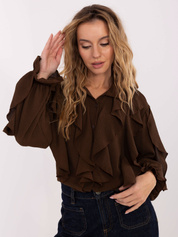 Czekoladowa koszula z falbankami przy rękawach