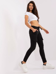 Hurtownia Czarne dresowe spodnie cargo z bawełną