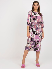 Hurt Fioletowa sukienka koktajlowa z printem i paskiem