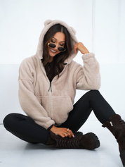 Jasnobeżowa rozpinana bluza miś z kapturem