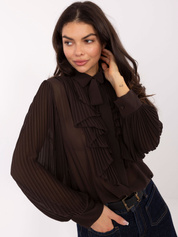 Ciemnobrązowa damska bluzka z okrągłym dekoltem