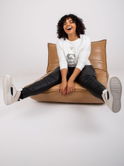 Hurtownia Ecru-khaki bluzka plus size z nadrukiem