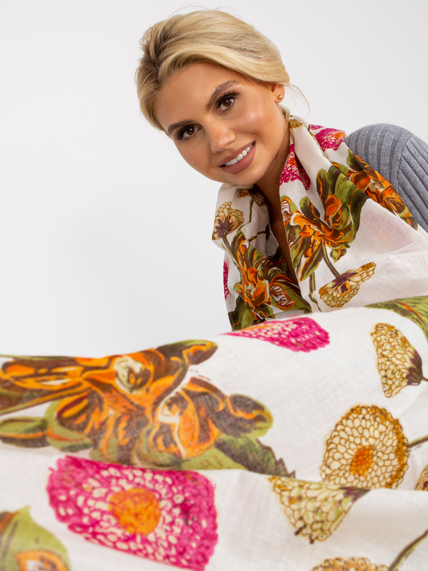 Hurtownia Biała kwiatowa chusta z bawełny