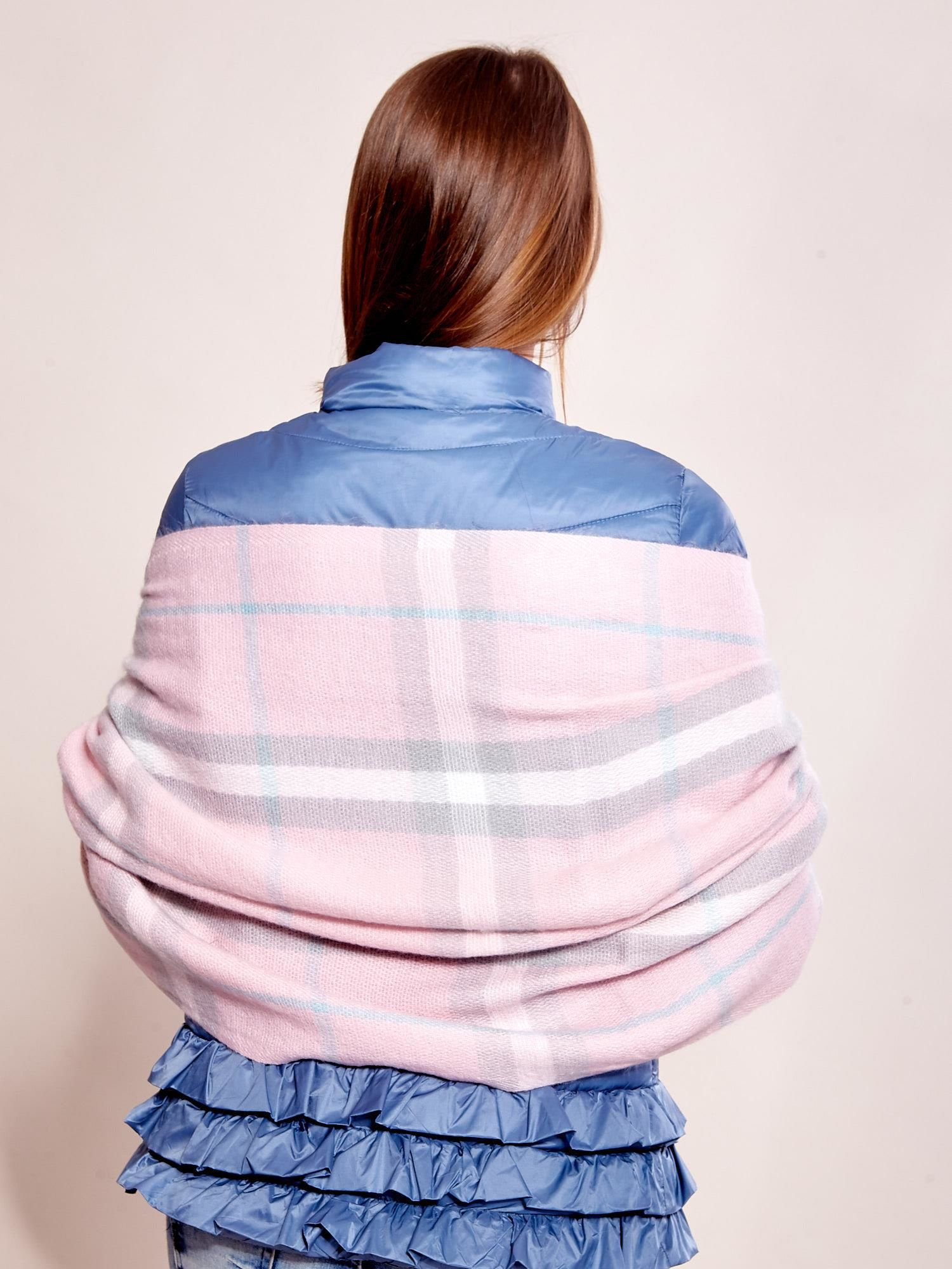 Szal damski w kratę różowy