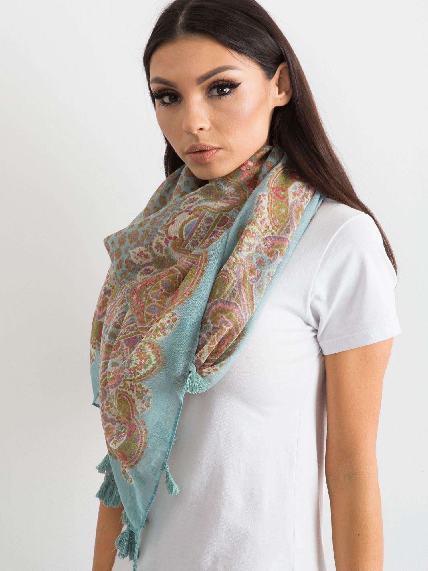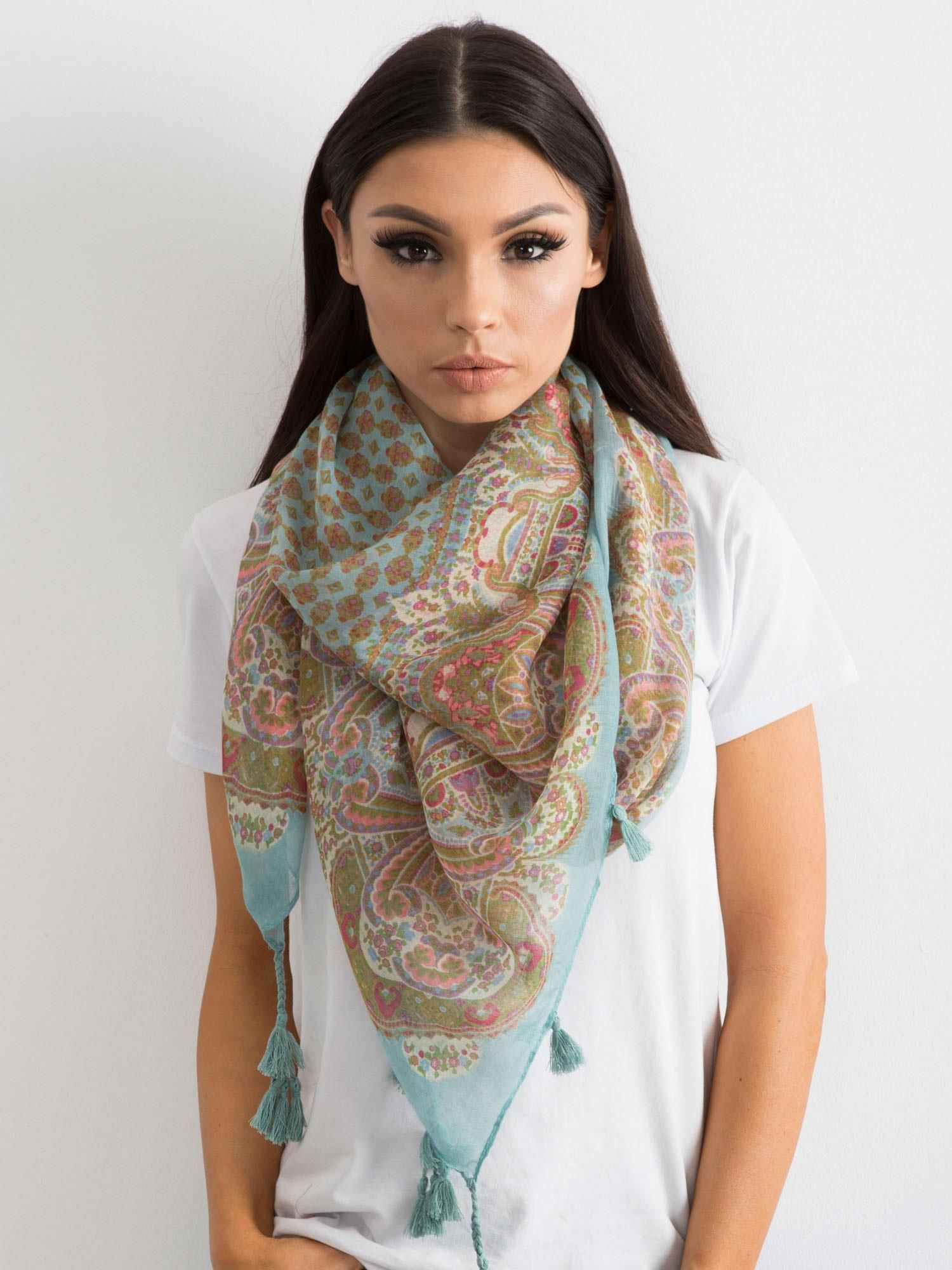 Opinie o Miętowa chusta z nadrukiem i frędzelkami