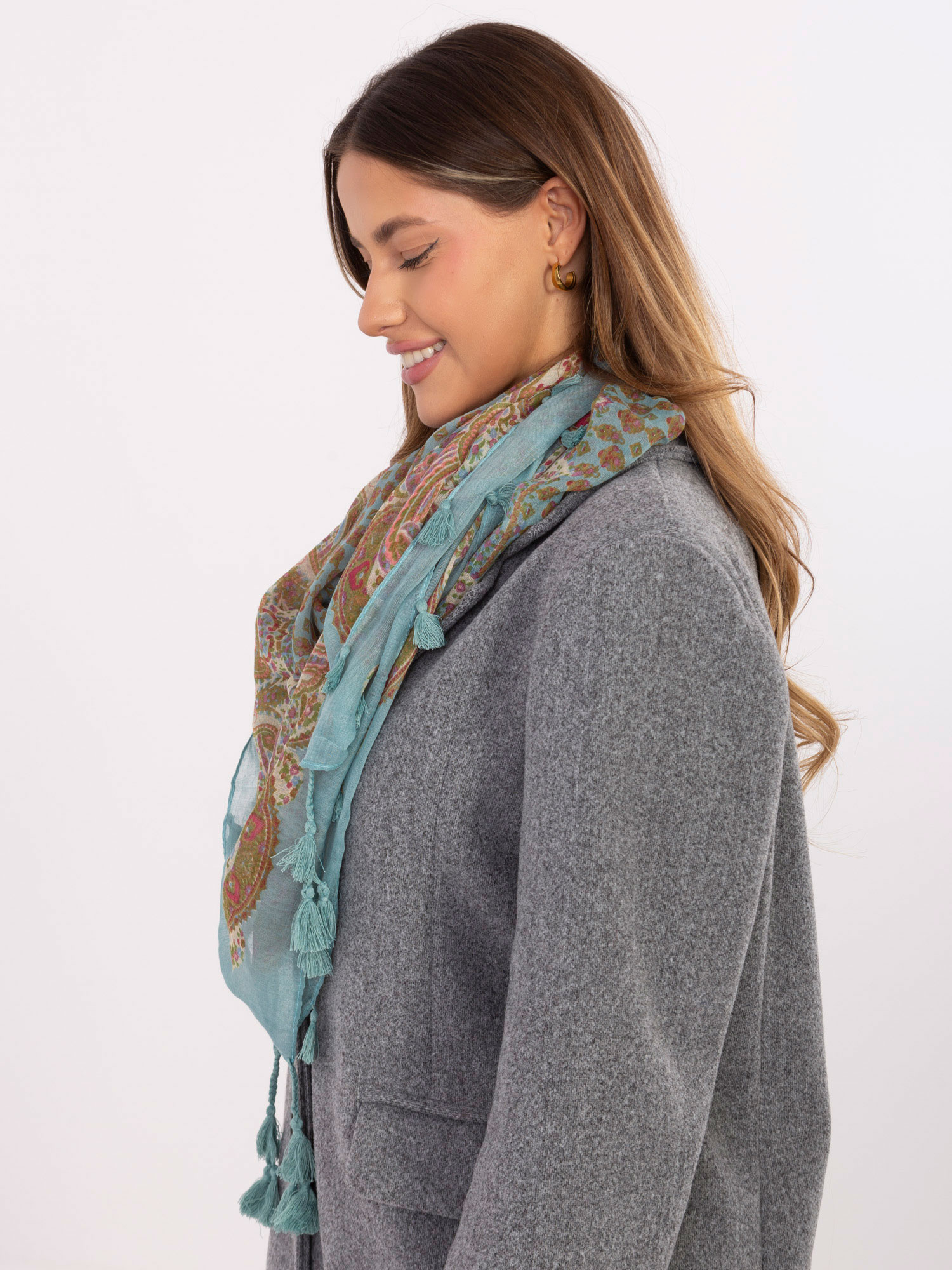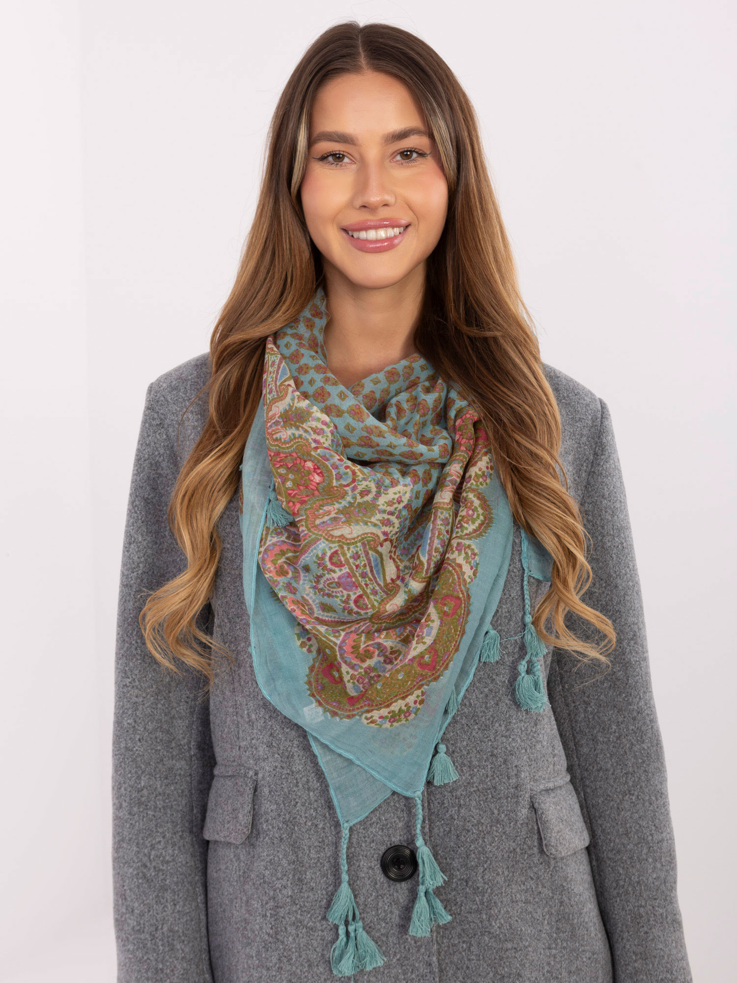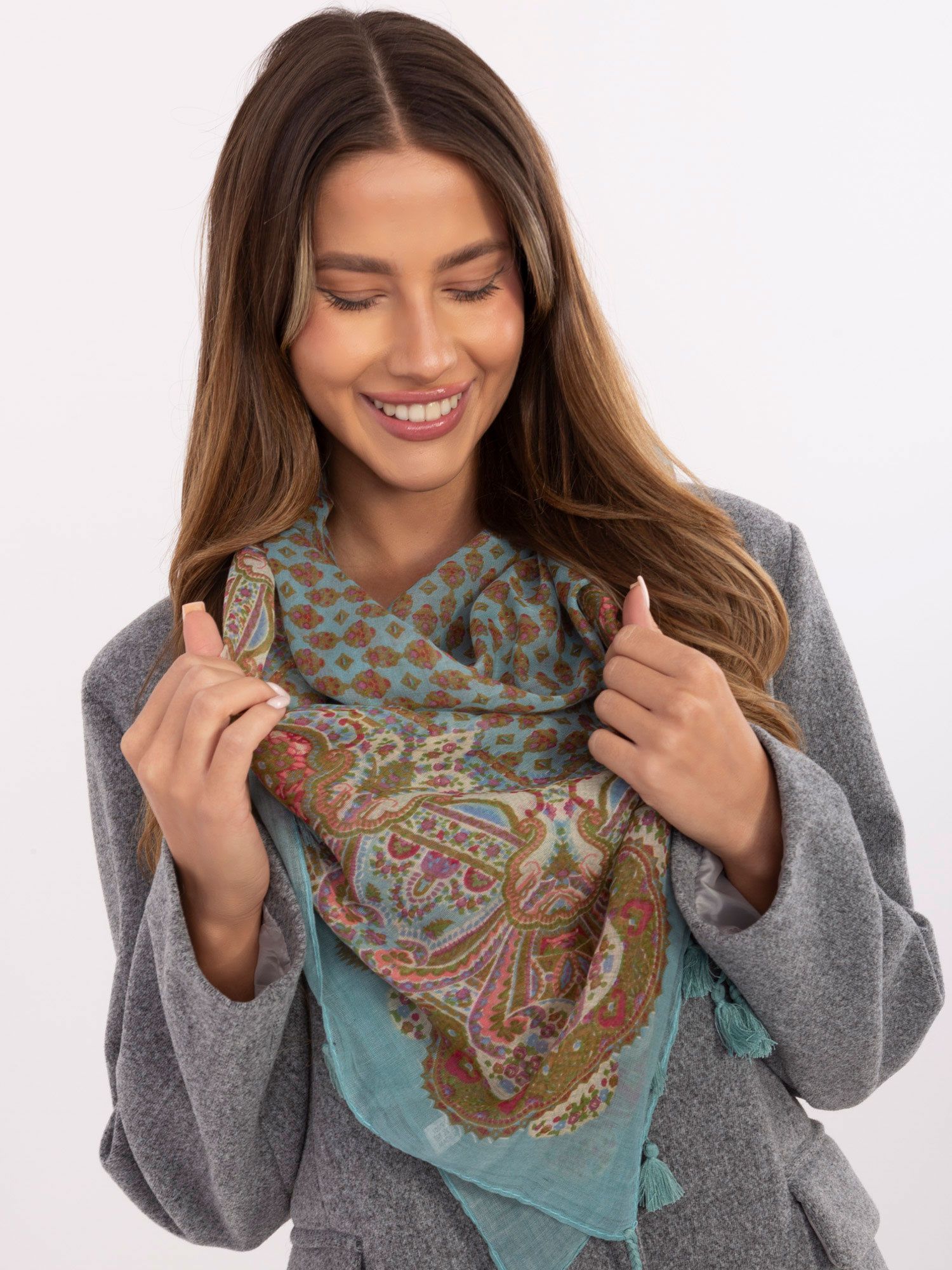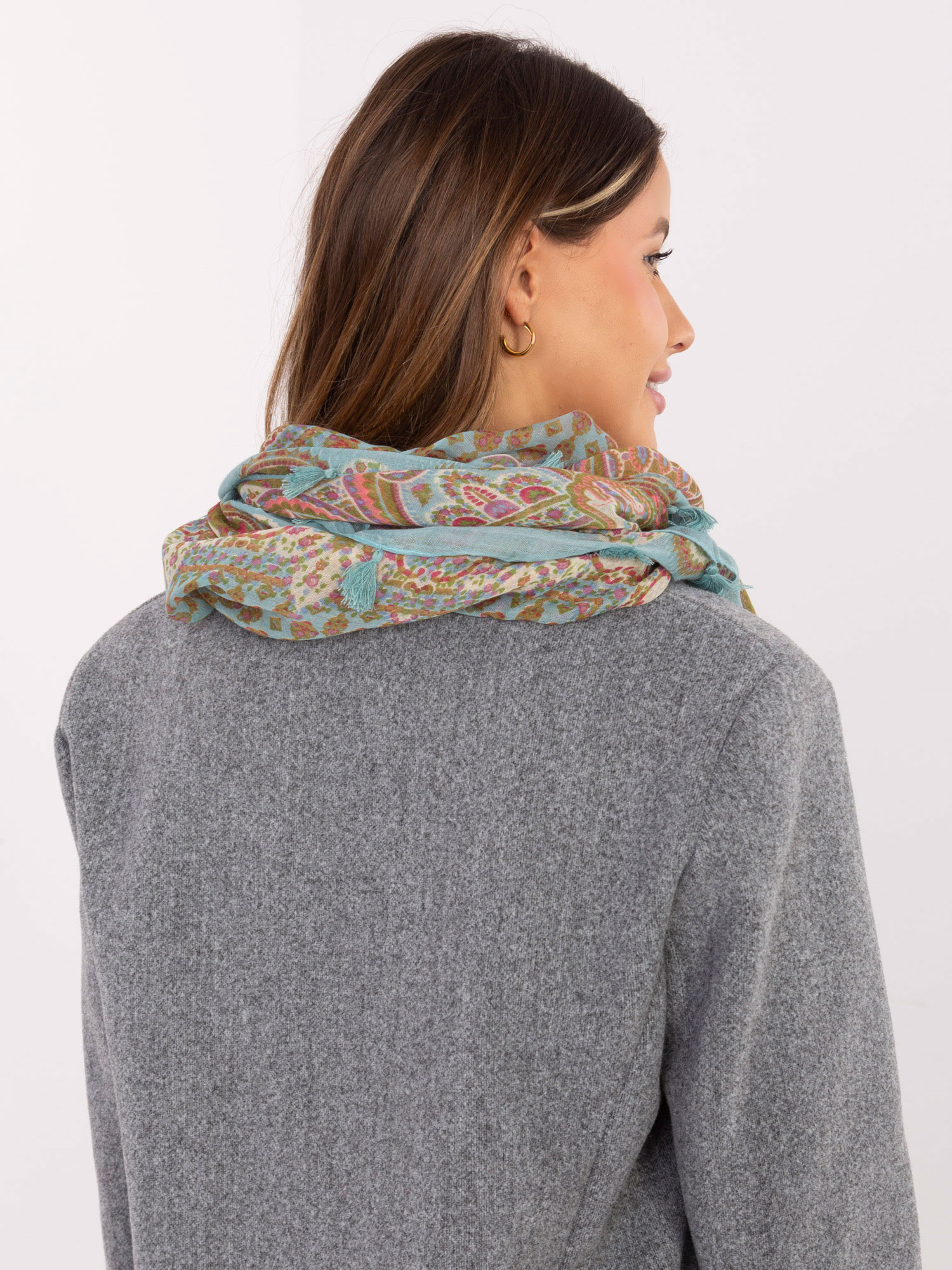 Miętowa damska chusta we wzory .
