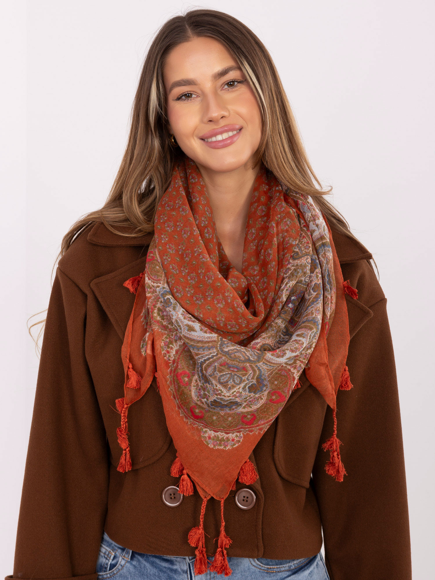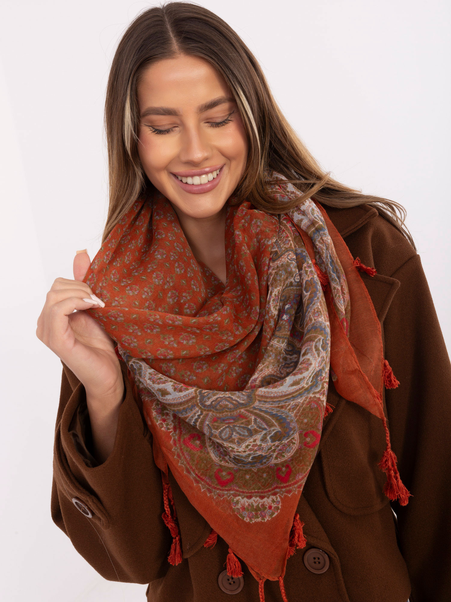 Opinie o Jasnobrązowa damska chusta z nadrukiem